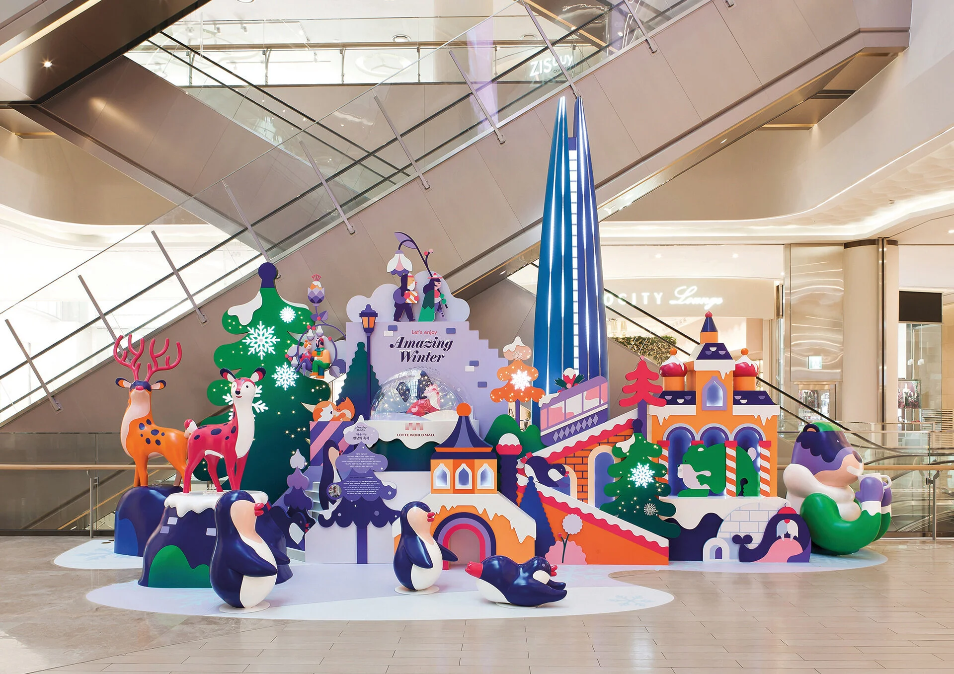 Illustrations for the Lotte World Mall, Amazing winter campaign in Seoul, Korea. Art direction and graphic design by Tist Agency.